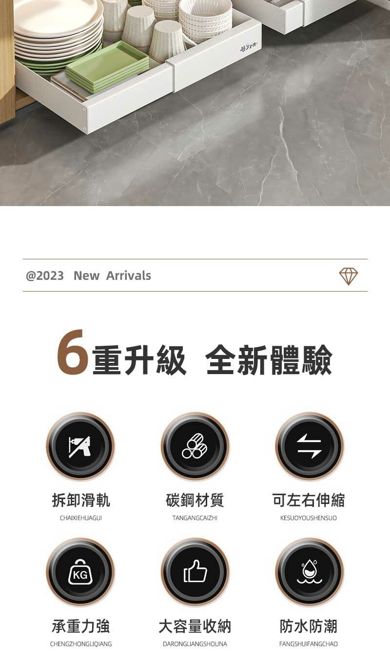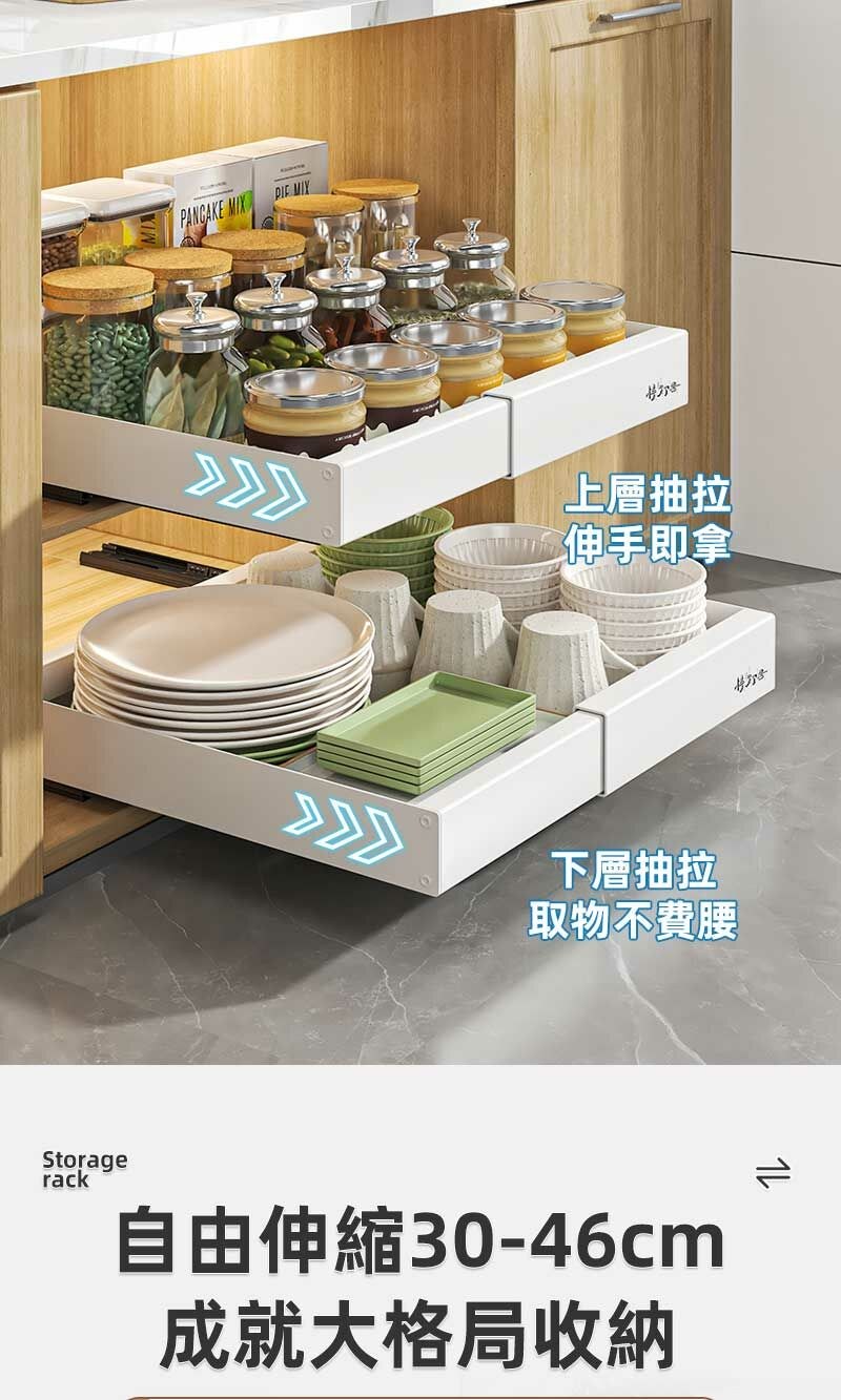 【慢慢家居】升級可伸縮-廚房多功能抽屜式收納置物架 (1入)伸縮抽拉籃-三軌道(白)