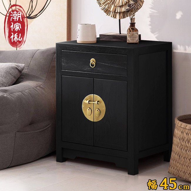【C'est Chic】頤和榆木雙門單抽櫃-幅45cm-風化黑
