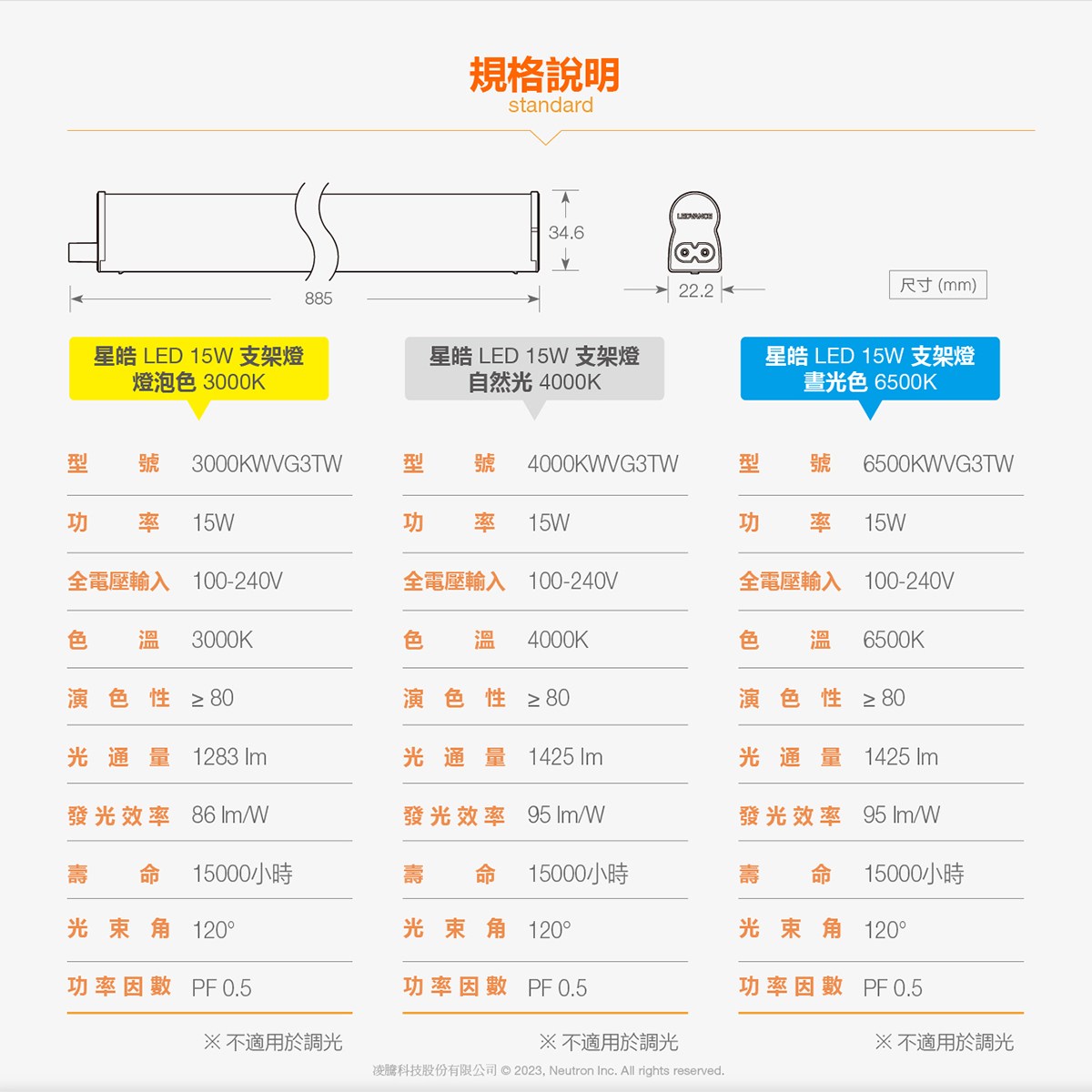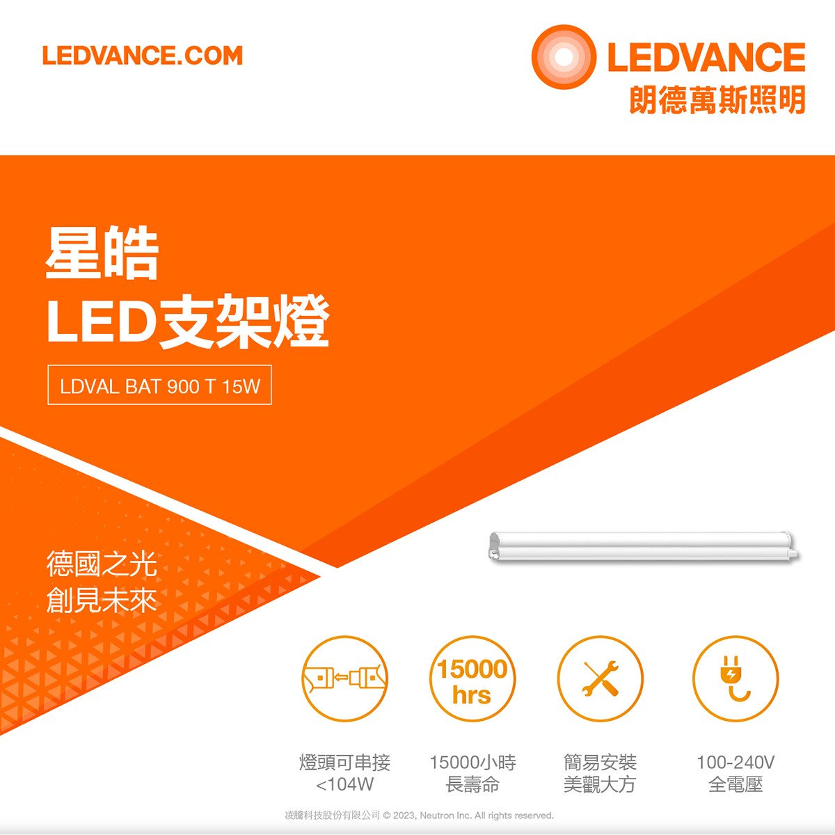 歐司朗 LED星皓支架燈3尺-15W 自然光