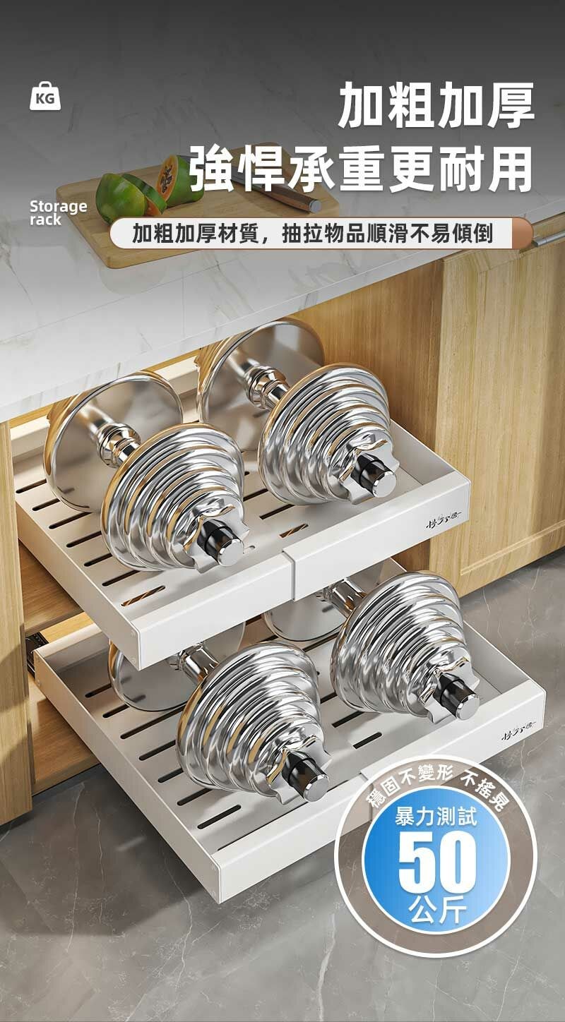 【慢慢家居】升級可伸縮-廚房多功能抽屜式收納置物架 (2入)伸縮抽拉籃-三軌道(白x2)