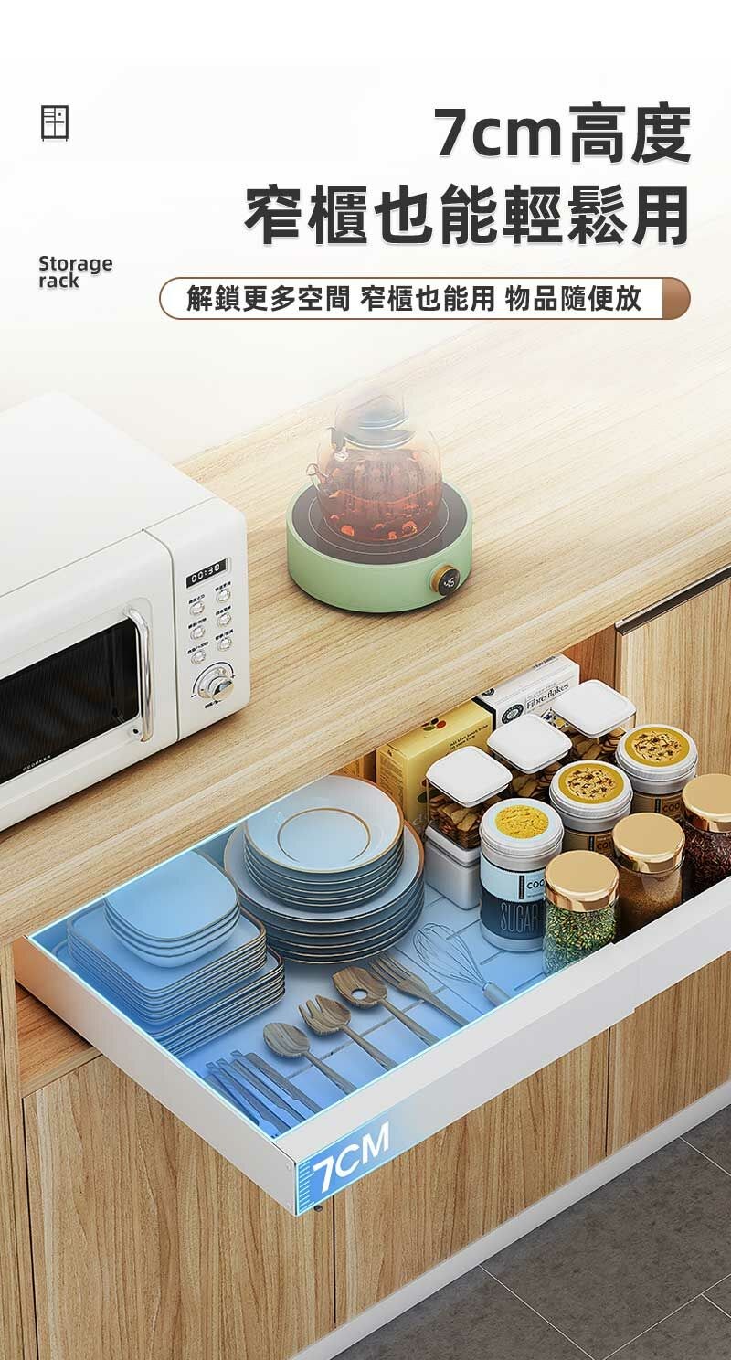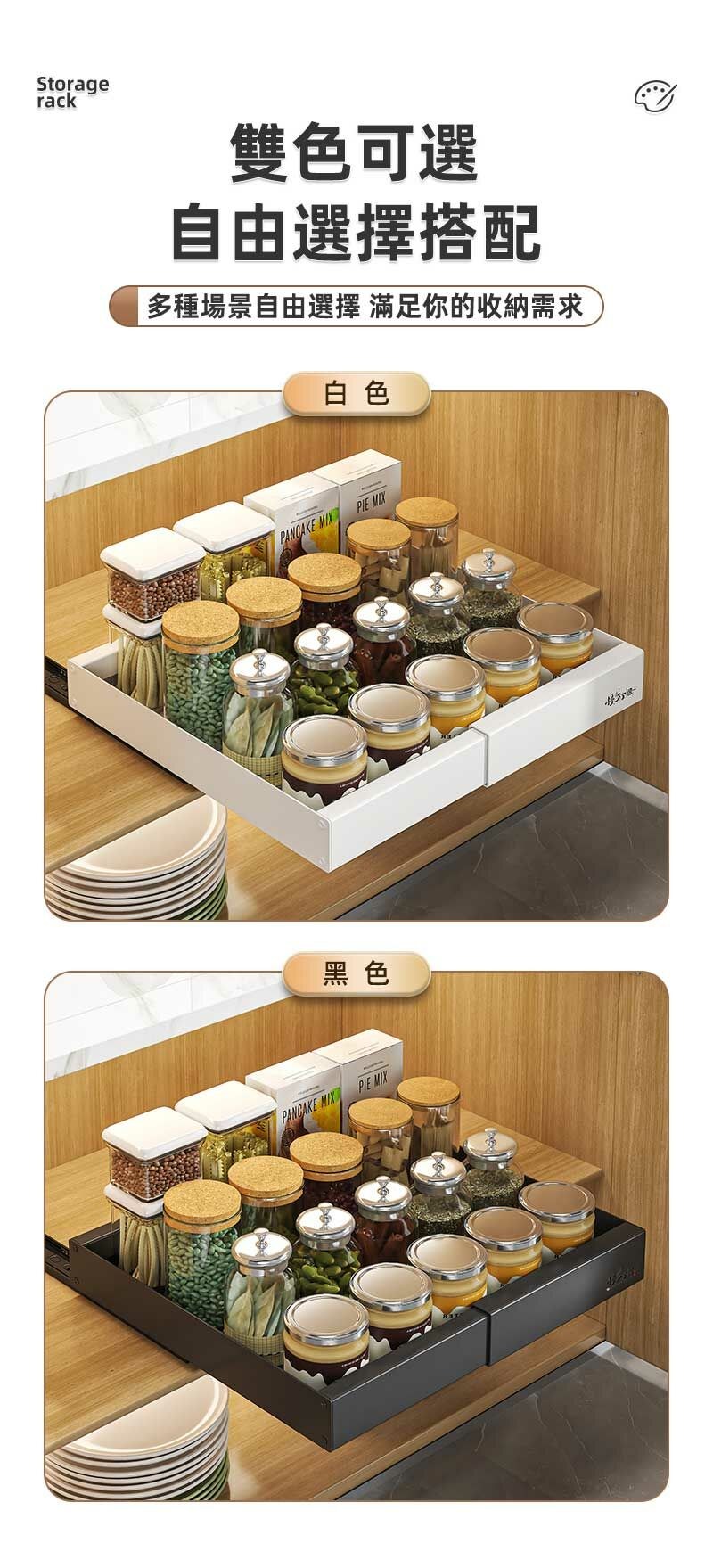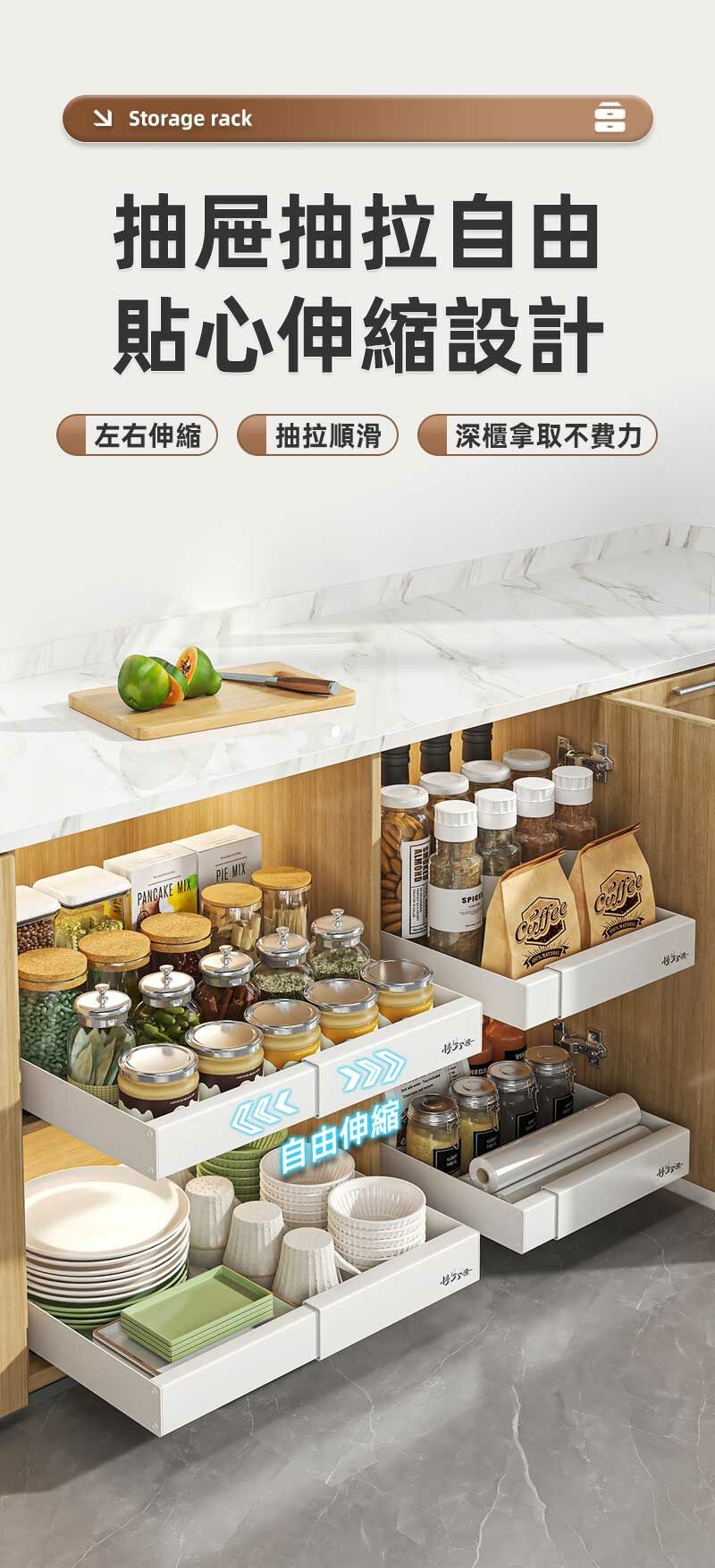 【慢慢家居】升級可伸縮-廚房多功能抽屜式收納置物架 (1入)伸縮抽拉籃-三軌道(白)