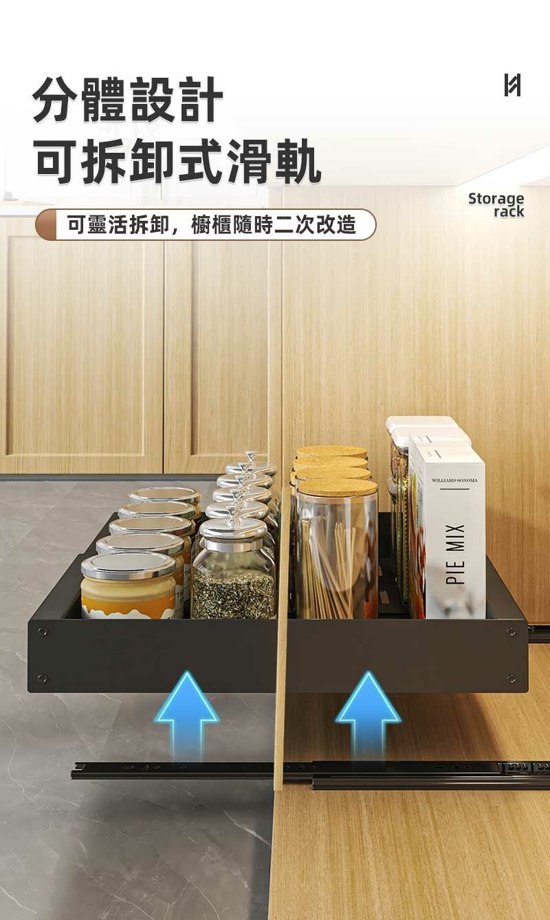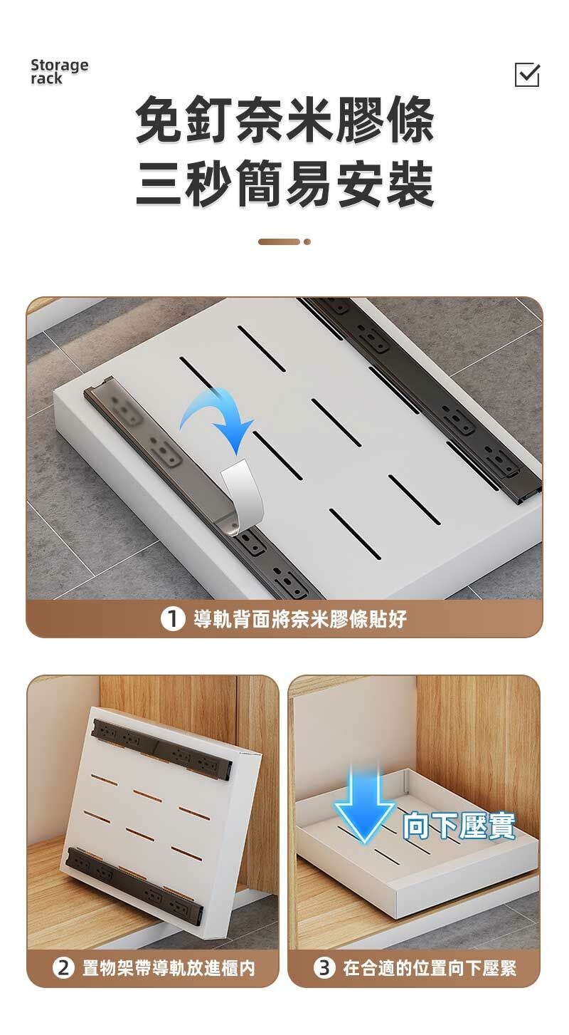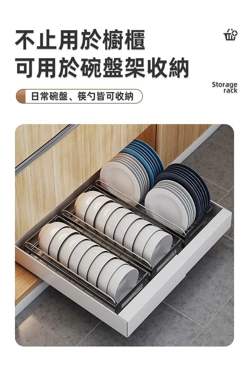 【慢慢家居】升級可伸縮-廚房多功能抽屜式收納置物架 (1入)伸縮抽拉籃-三軌道(白)
