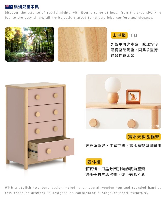 1993 年 Boori 第一間門市在澳洲雪梨開始營運。30 年後在全球 7 個國家有服務據點,成為全球兒童家具品牌,受到百萬家長信任。使用 FSC 認證木材,品質優良,對環境友善。透過獨特細膩的工匠技藝,讓每一件家具均是精心製作,經久耐用。