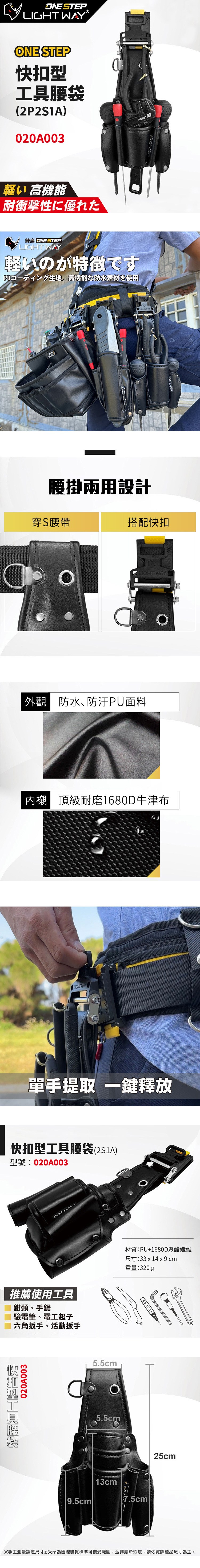 [LightWay錸崴]ONE STEP 快扣型工具腰袋 (2P2S)/020A004
