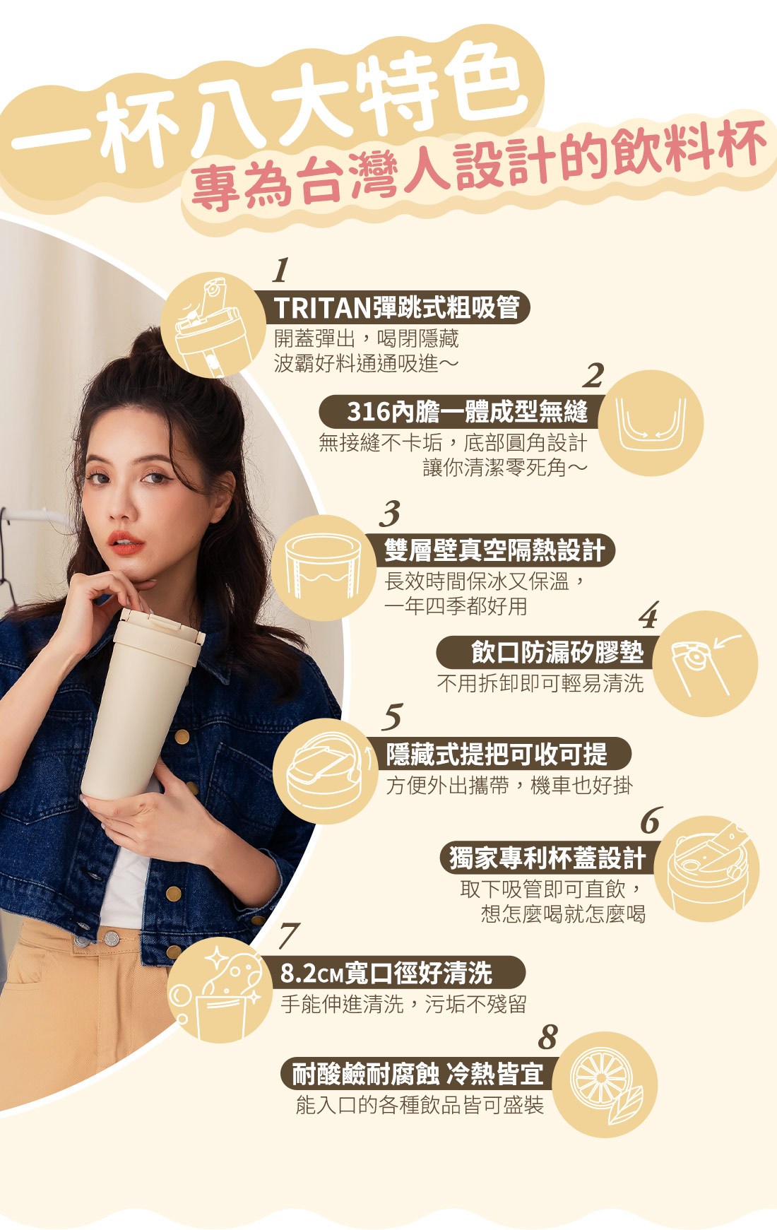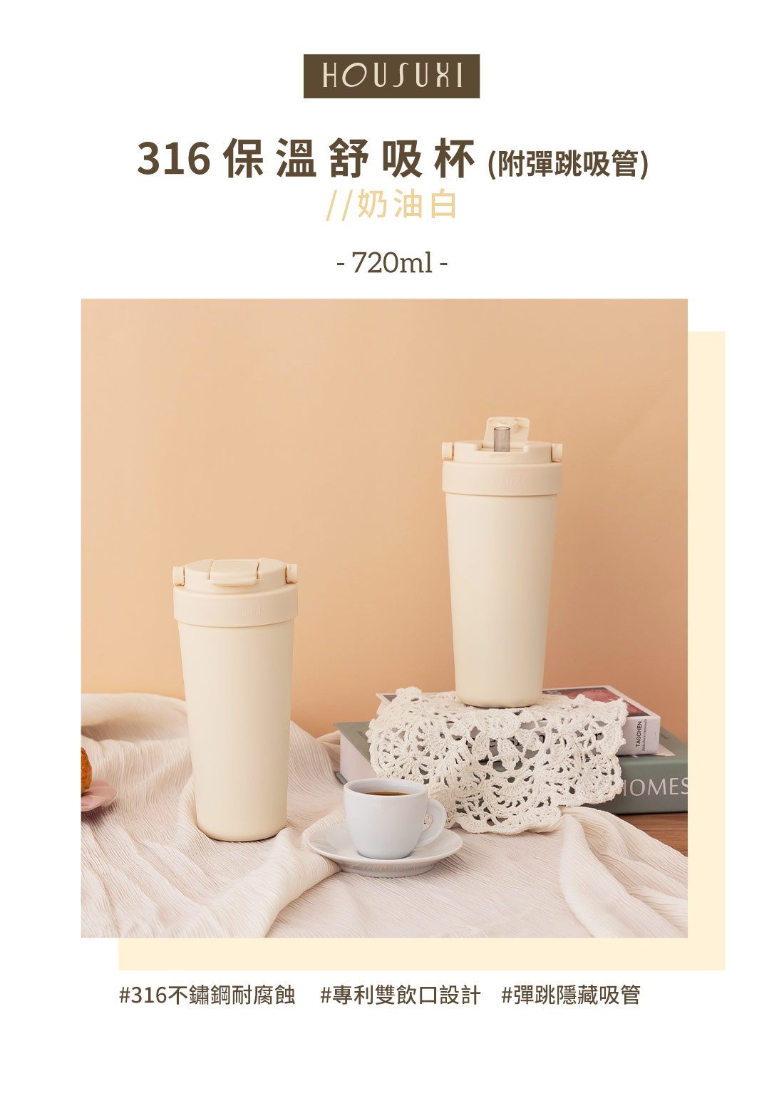 品名 :【HOUSUXI】316保溫舒吸杯(附彈跳吸管)720mL-奶油白