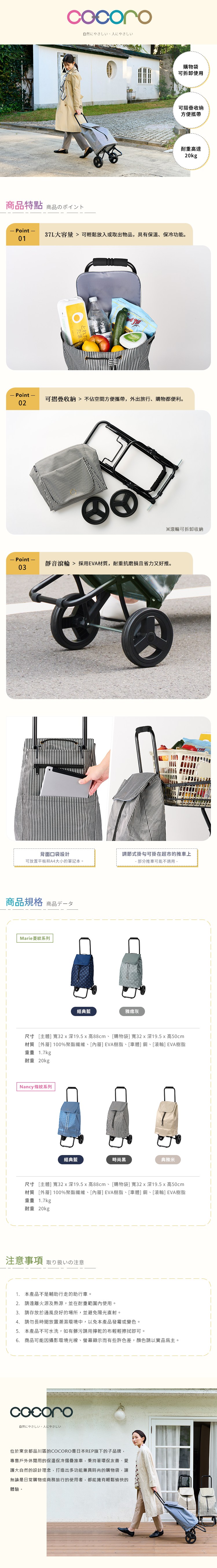 【日本cocoro】Nancy 條紋保溫保冷摺疊購物車-37L-多色可選-時尚黑
