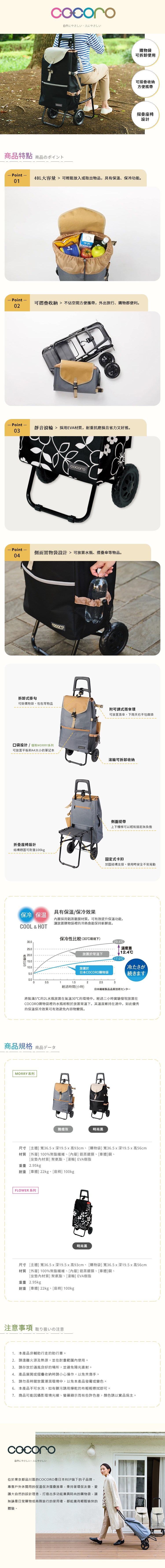 日本cocoro PLAIN COLOR 保溫保冷摺疊購物車-40L-多色可選