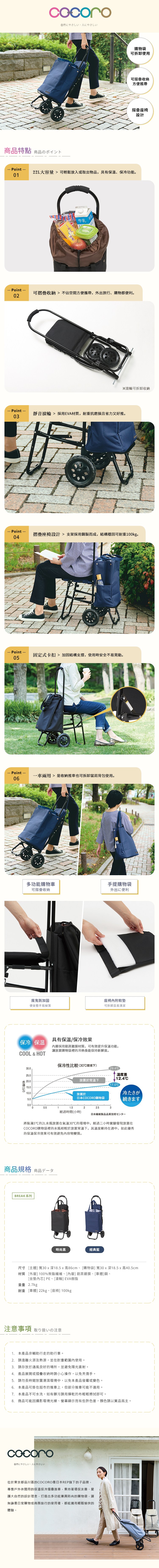 【日本cocoro】印花多功能保溫保冷四輪摺疊購物車-18L-海軍藍