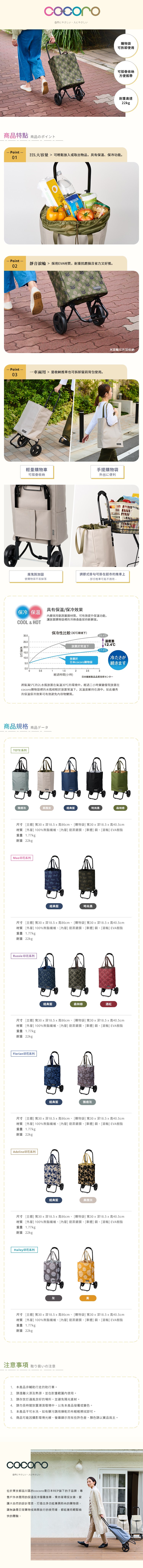 日本cocoro Hailey 印花系列保溫保冷摺疊購物車-22L-多色可選