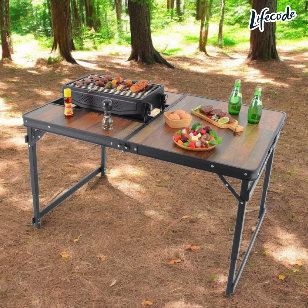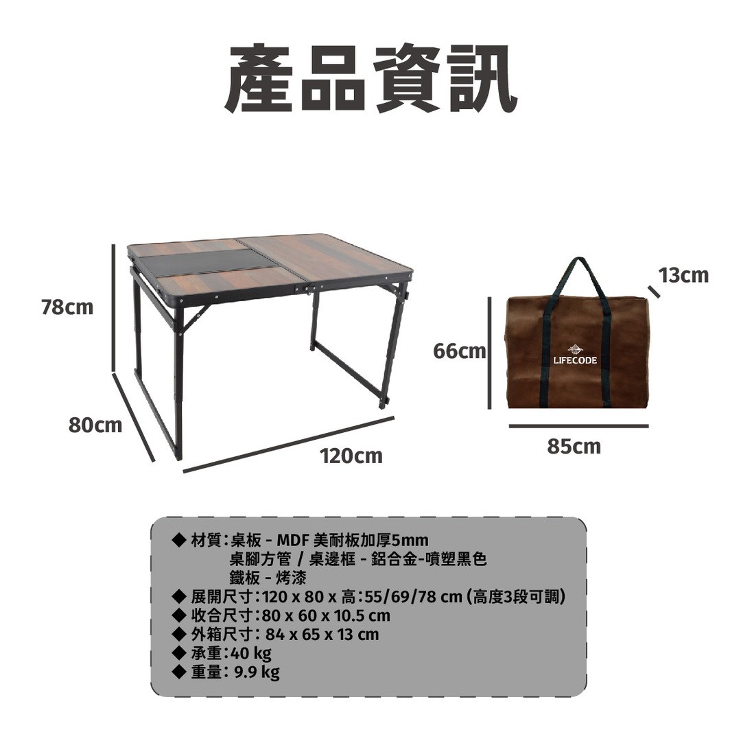 【LIFECODE】黑電木加寬鋁合金BBQ燒烤桌/烤肉桌/兩用折疊桌-附背袋(120*80cm) 13310380-1