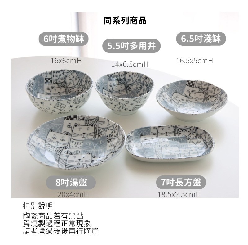 佐和陶瓷 笑笑貓水皿 日本製 620ml 陶瓷餐盤 點心盤 菜盤 黑色/白色/灰色 1個 20.5 x 4cm