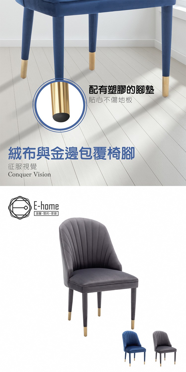E-home Olivia奧利維亞高級絨布包金腳休閒餐椅-兩色可選