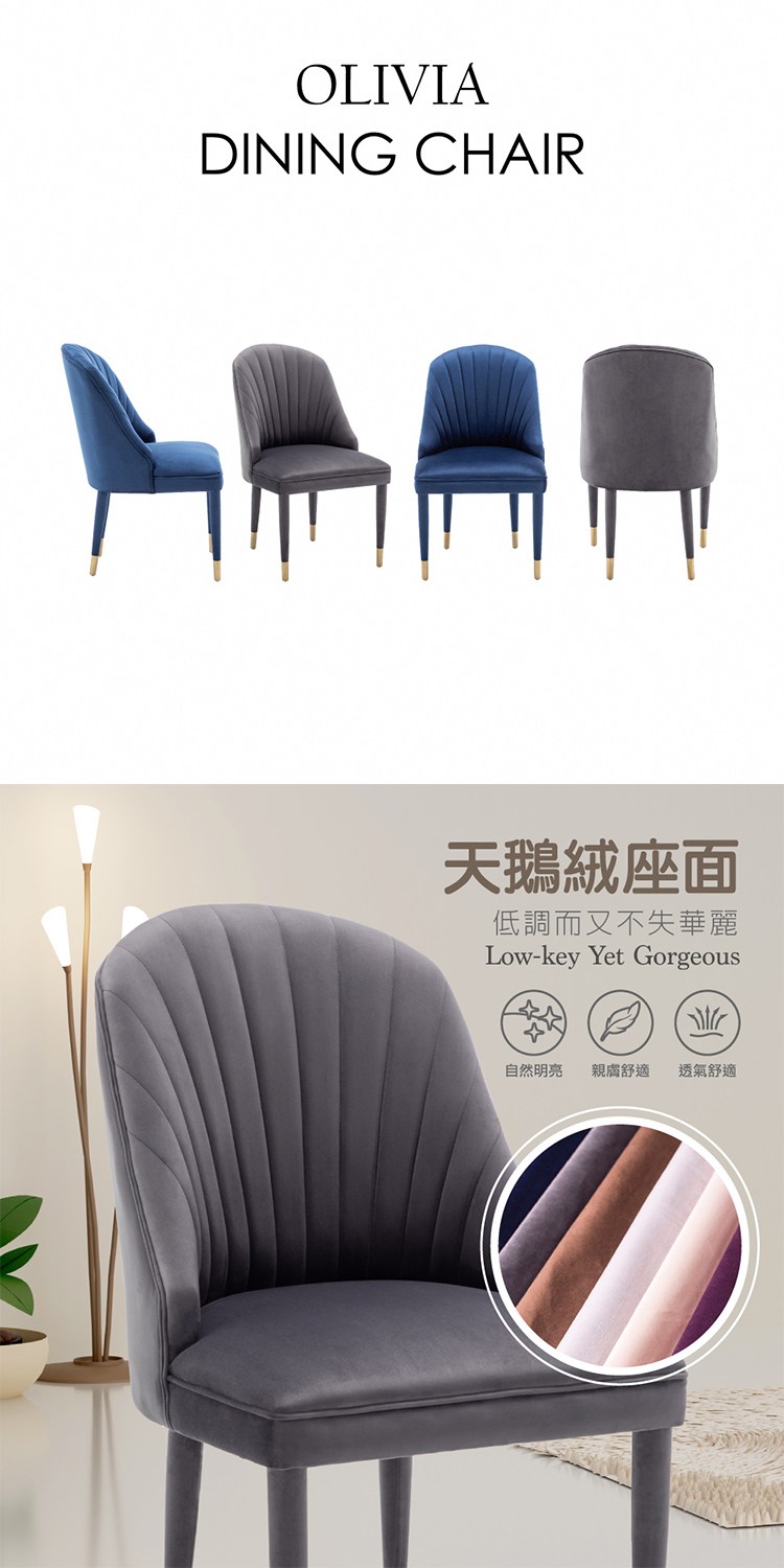 [E-home]Olivia奧利維亞高級絨布包金腳休閒餐椅,典雅簡約的新時代輕奢風潮樂章,空間最佳佈置。