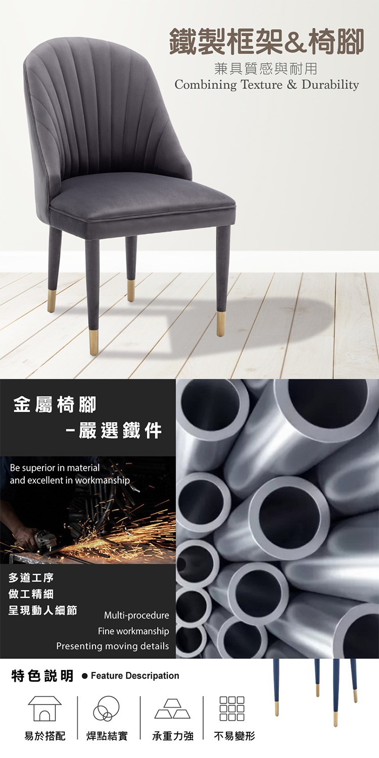 * 鐵製框架與椅腳兼具質感與耐用