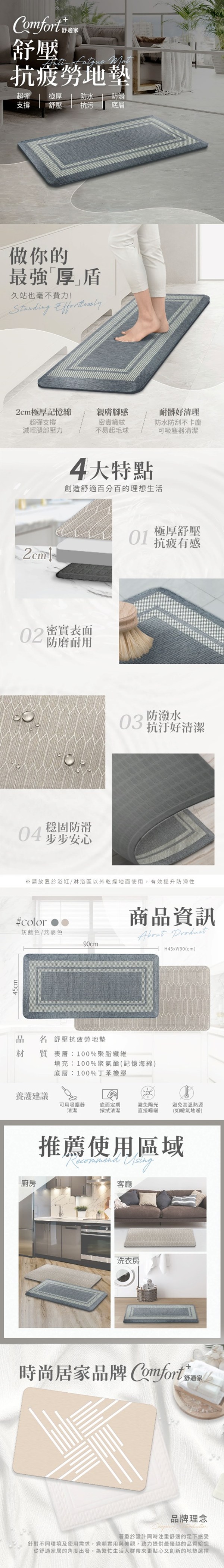 免運 公司貨 地毯 地墊 歐式廚房地墊長條防油腳墊衛浴門口防滑吸水門墊臥室床邊地毯
