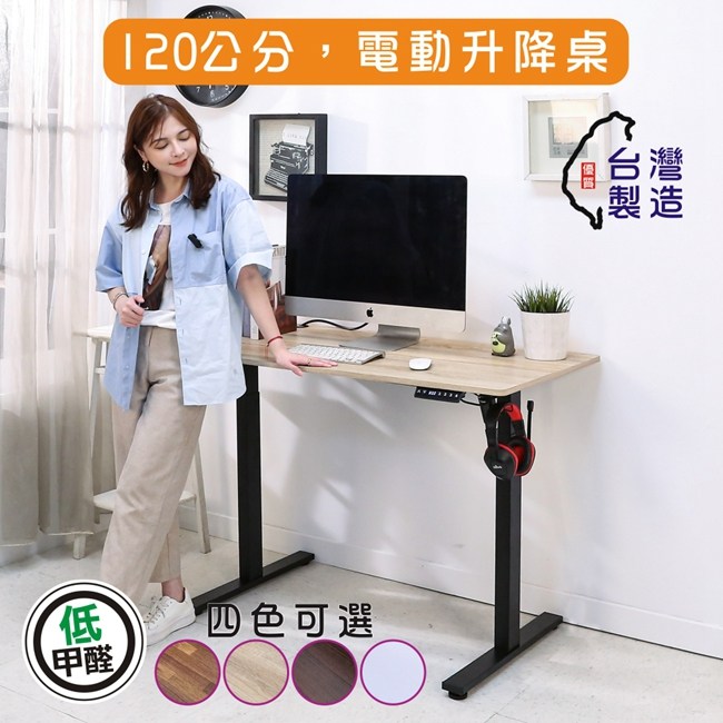 BuyJM MIT低甲醛無段式電動升降工作桌(寬120x60公分)書桌/電腦桌/辦公桌/成長桌白木紋