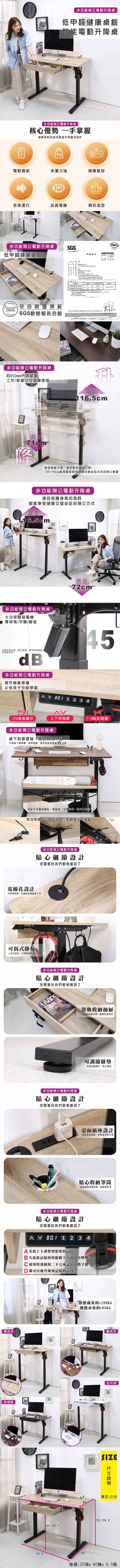 BuyJM MIT低甲醛附抽屜無段式電動升降工作桌(寬120x60公分)/書桌/電腦桌/辦公桌/成長桌集成木紋