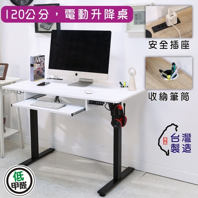 BuyJM MIT低甲醛附鍵盤架插座筆筒無段式電動升降工作桌(寬120x60公分)/書桌/電腦桌/辦公桌白木紋