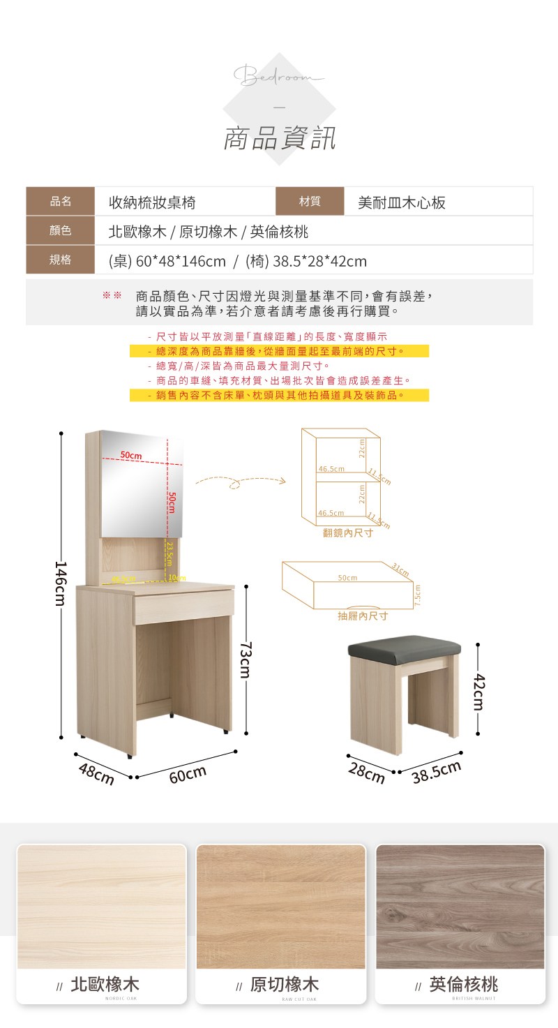 點我下載【IDEA】MIT凡賽60CM收納梳妝桌椅/化妝桌椅組 化妝台(3色任選)英倫核桃
