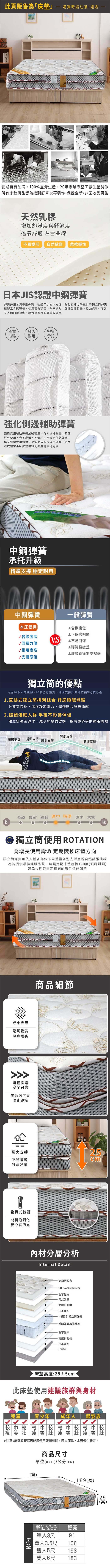 【本木】K301 石墨烯 乳膠高彈簧獨立筒床墊-雙人5尺