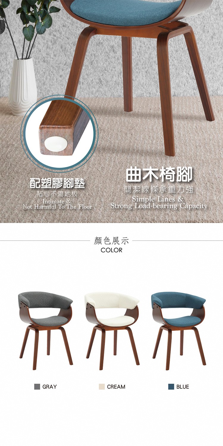 * 搭配簡潔線條曲木椅腳承重力強