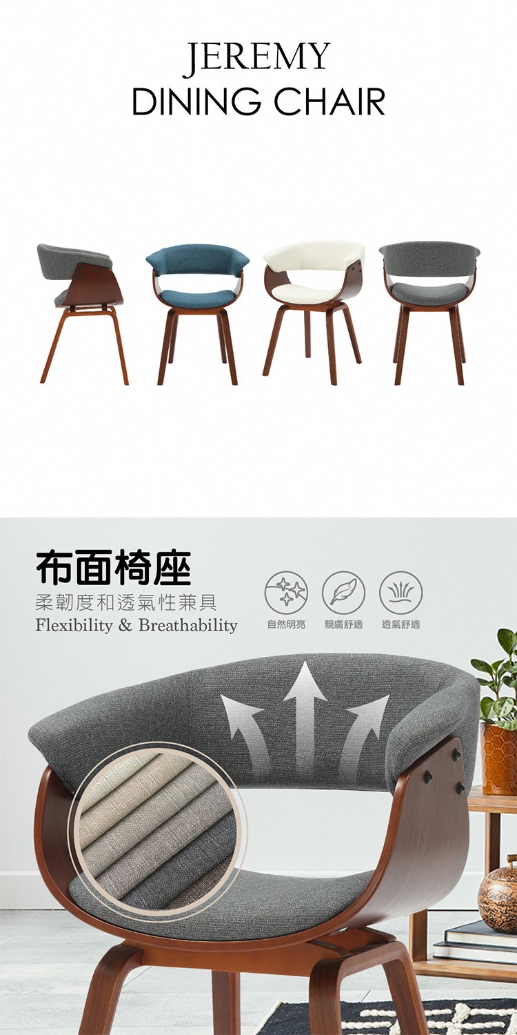 [E-home]Jeremy捷洛米布面造型扶手曲木休閒餐椅,時尚與古典的結合滿足生活品味,增添室內亮麗的擺設。