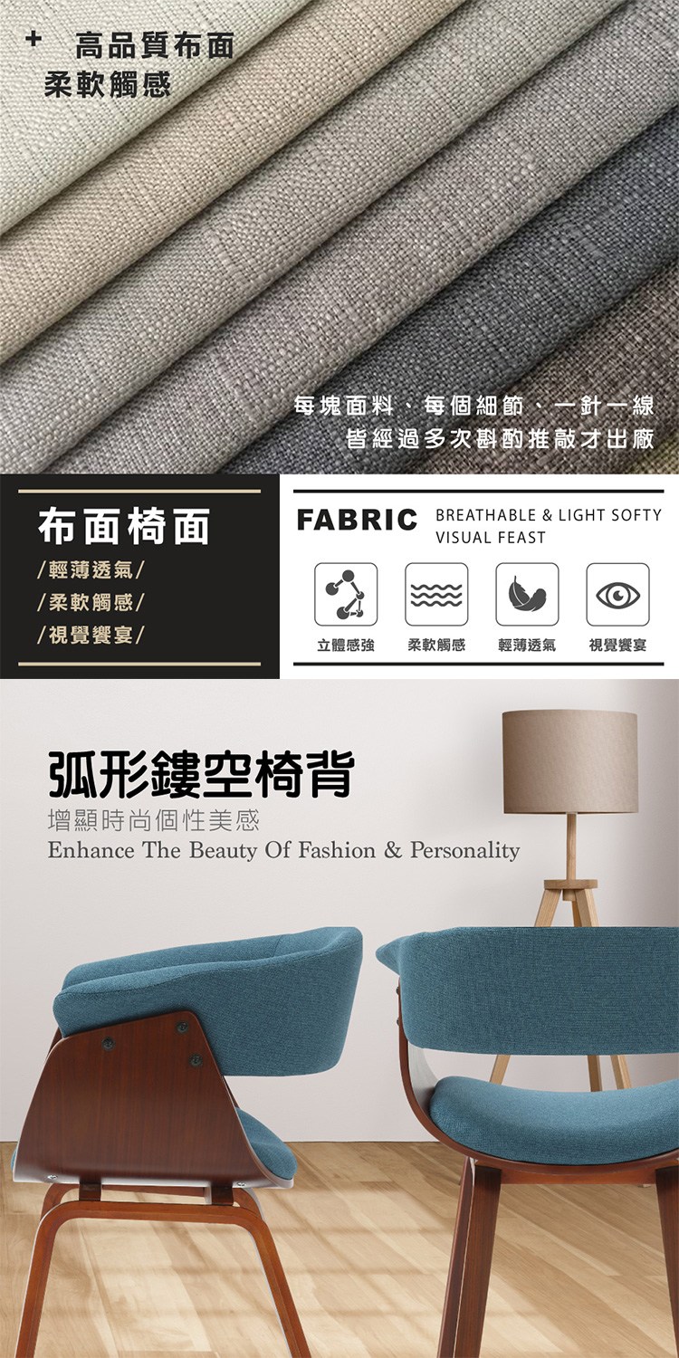 * 柔韌度和透氣性兼具的布面椅座