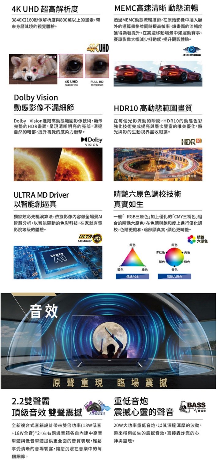 SAMPO聲寶 55吋 OLED-55ZW8212 連網智慧顯示器 4K OLED轟天雷