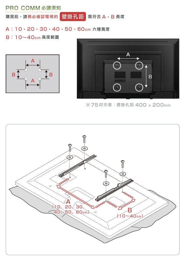 ◆ 適用電視尺寸32~80吋