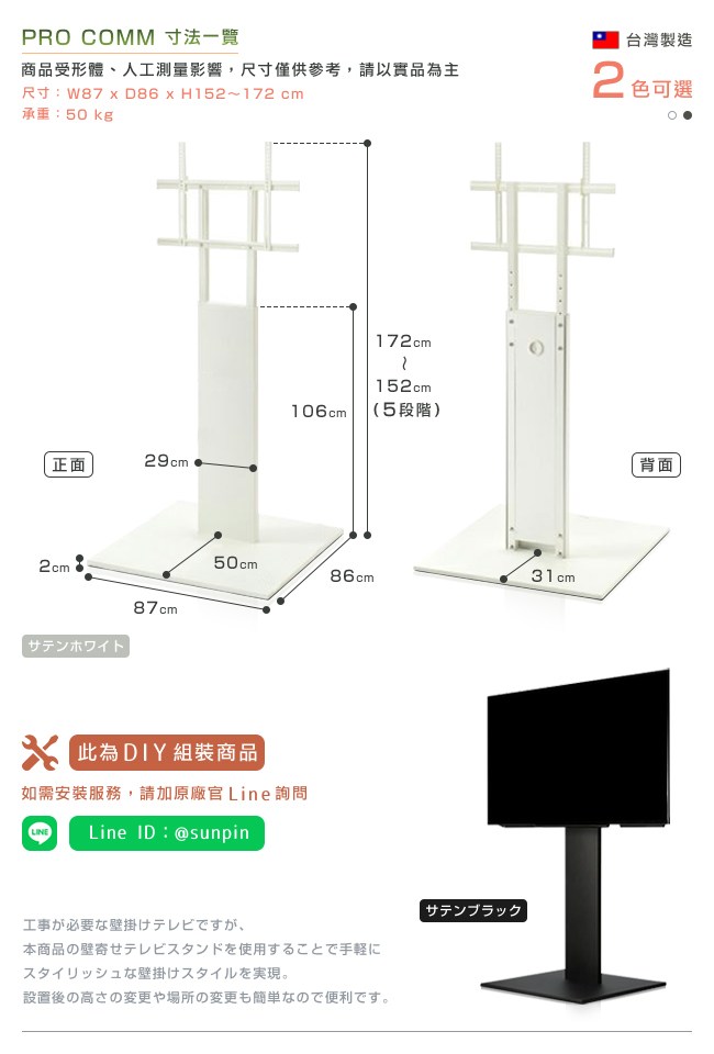 ◆ 台灣製造,耐荷重50kg