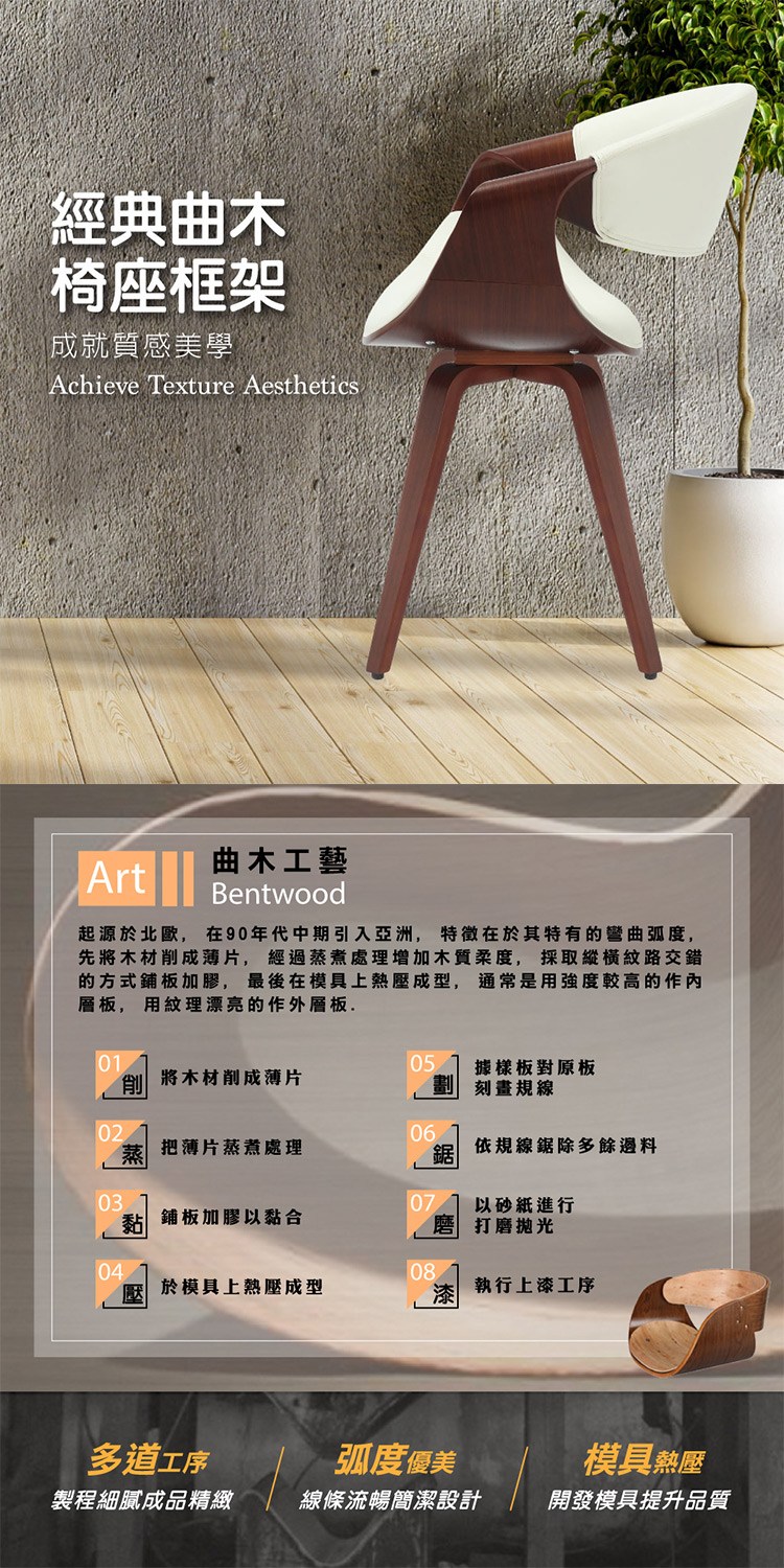 * 經典曲木椅座框架成就質感美學