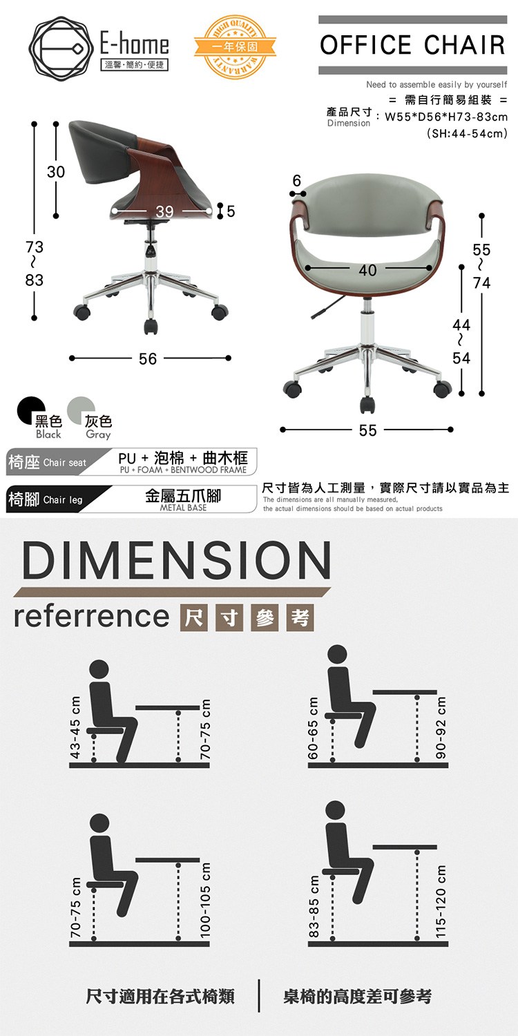 產品尺寸:W55*D56*H73-83 cm (SH:44-54 cm)