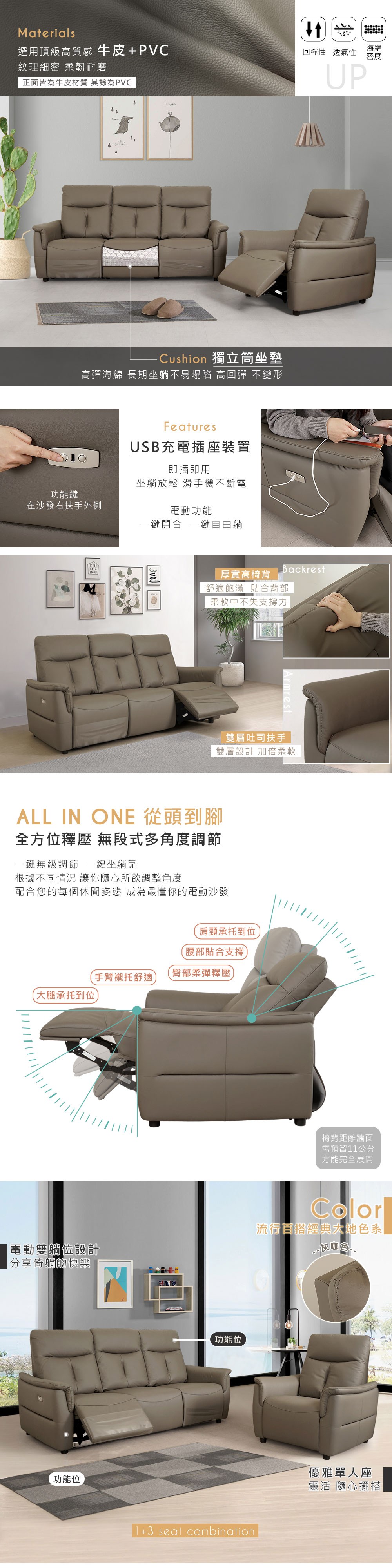 ASSARI-薰伊高背支撐1+2+3人座貓抓皮沙發雙色