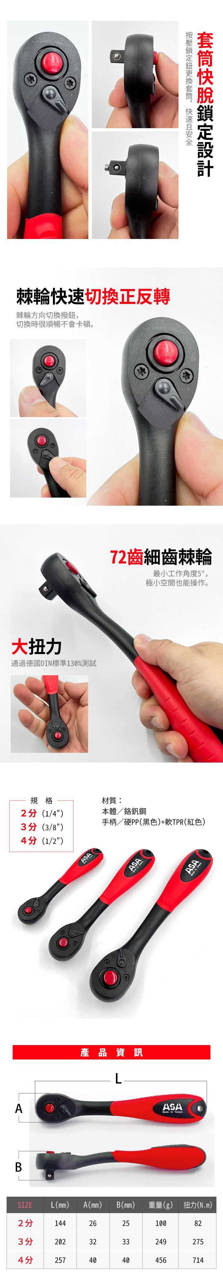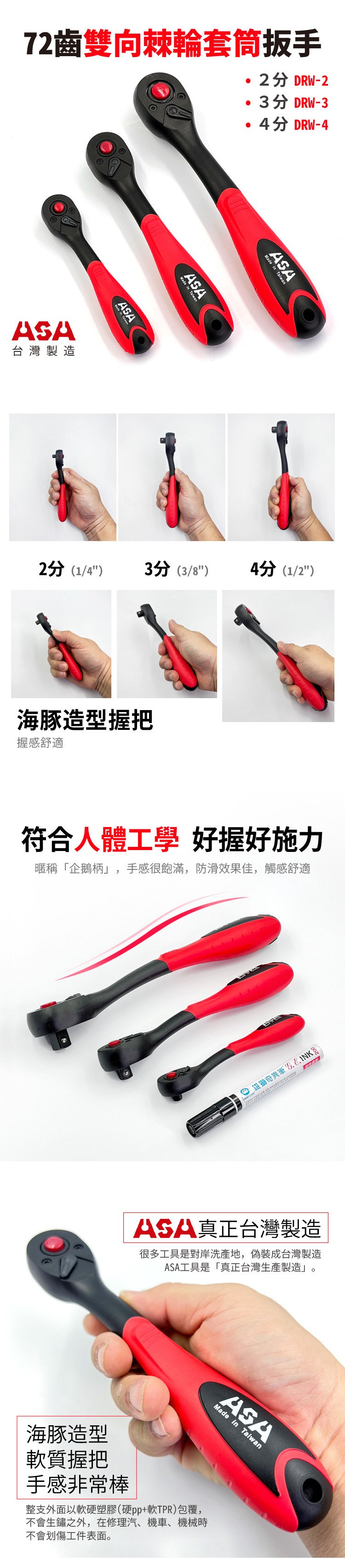 【ASA】72齒海豚雙向棘輪扳手-4分 (DRW-4)