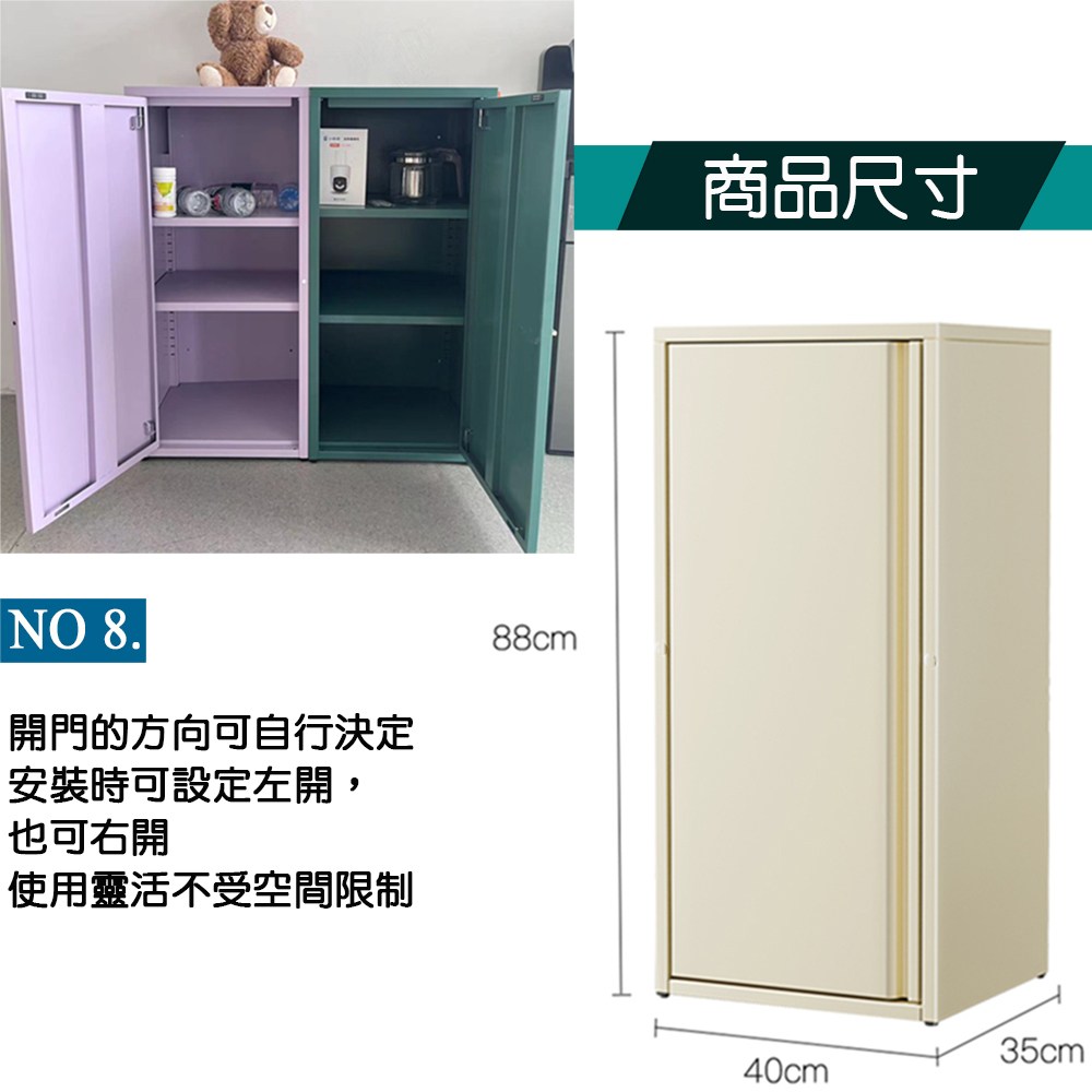單門的設計,能防塵能隱藏,內附兩片可調高度的層板,讓物品的收納更加的靈活,細長的隙縫設計讓原本被忽視的角落變為意想不到的儲存空間,底部調整腳墊設計可避免地面不平。