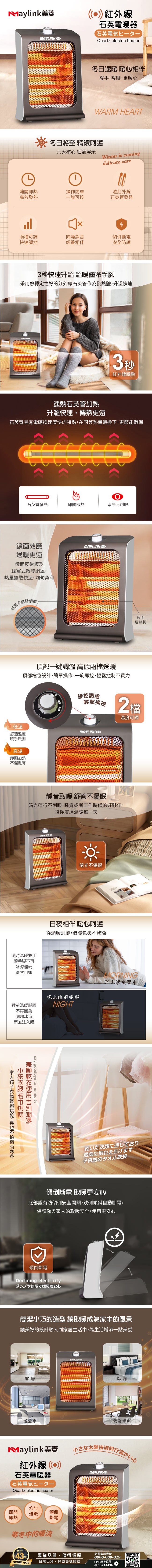 【MAYLINK美菱】紅外線瞬熱式石英管電暖器