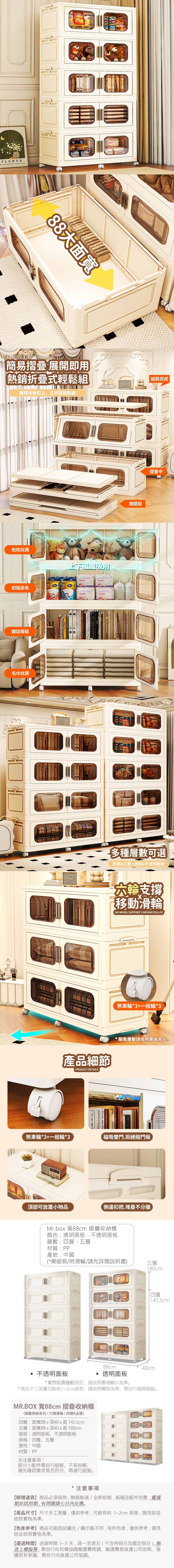 【Mr.box】88面寬折疊前開式五層收納櫃/收納箱-附滑輪透明面板