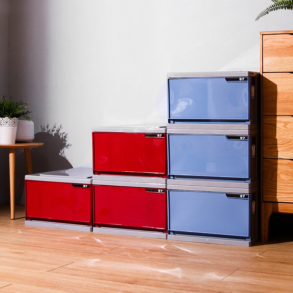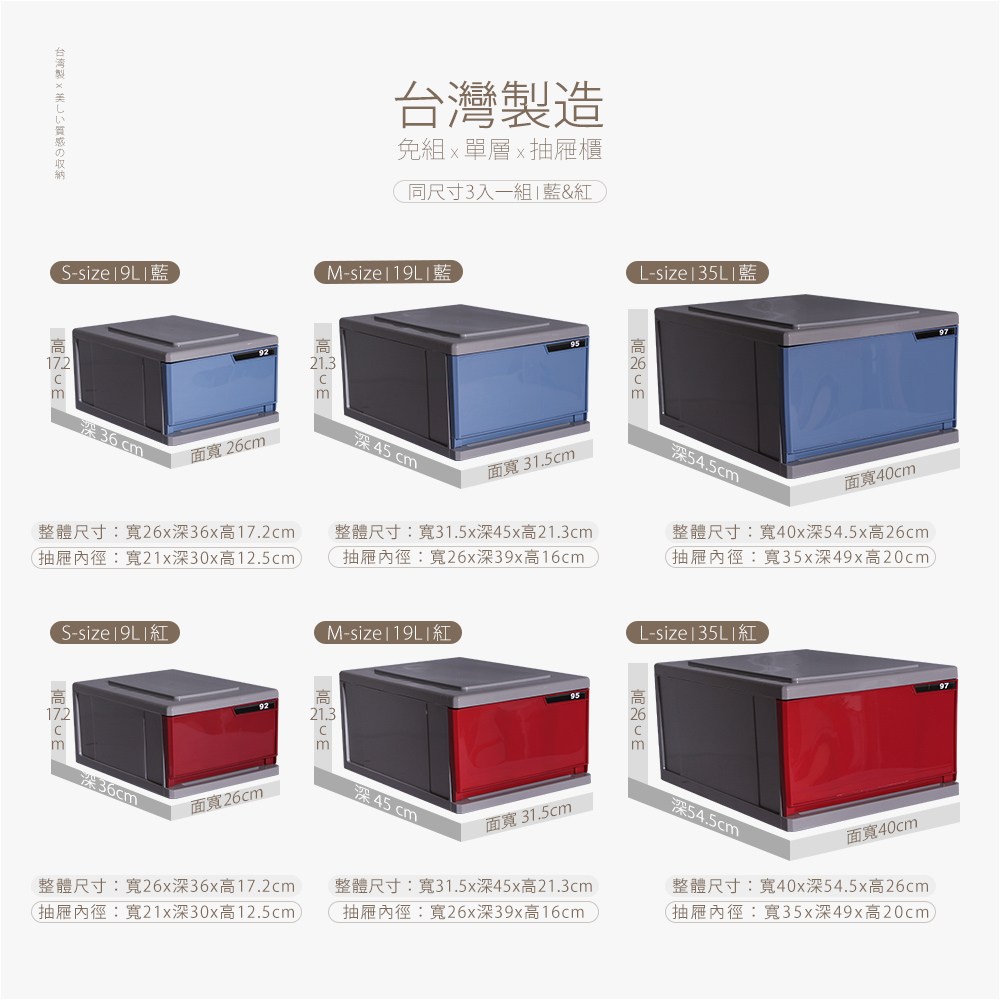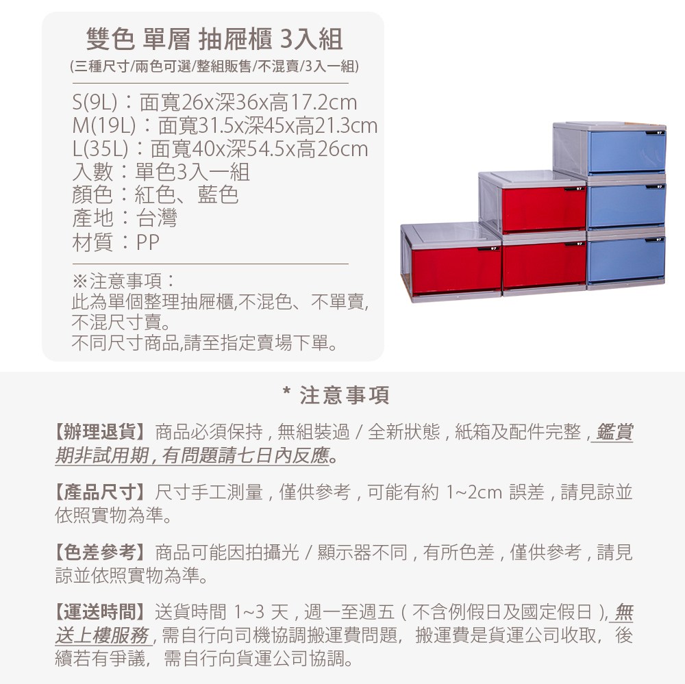 【Mr.box】免組裝單層抽屜式收納箱 19L-3入19L-3入(紅色)