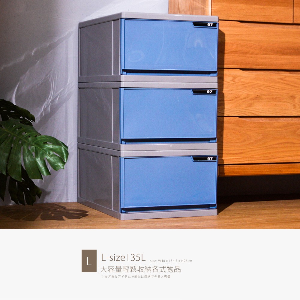 【Y HOUSE】全開式收納箱/置物箱/整理箱/塑膠箱-35L藍色