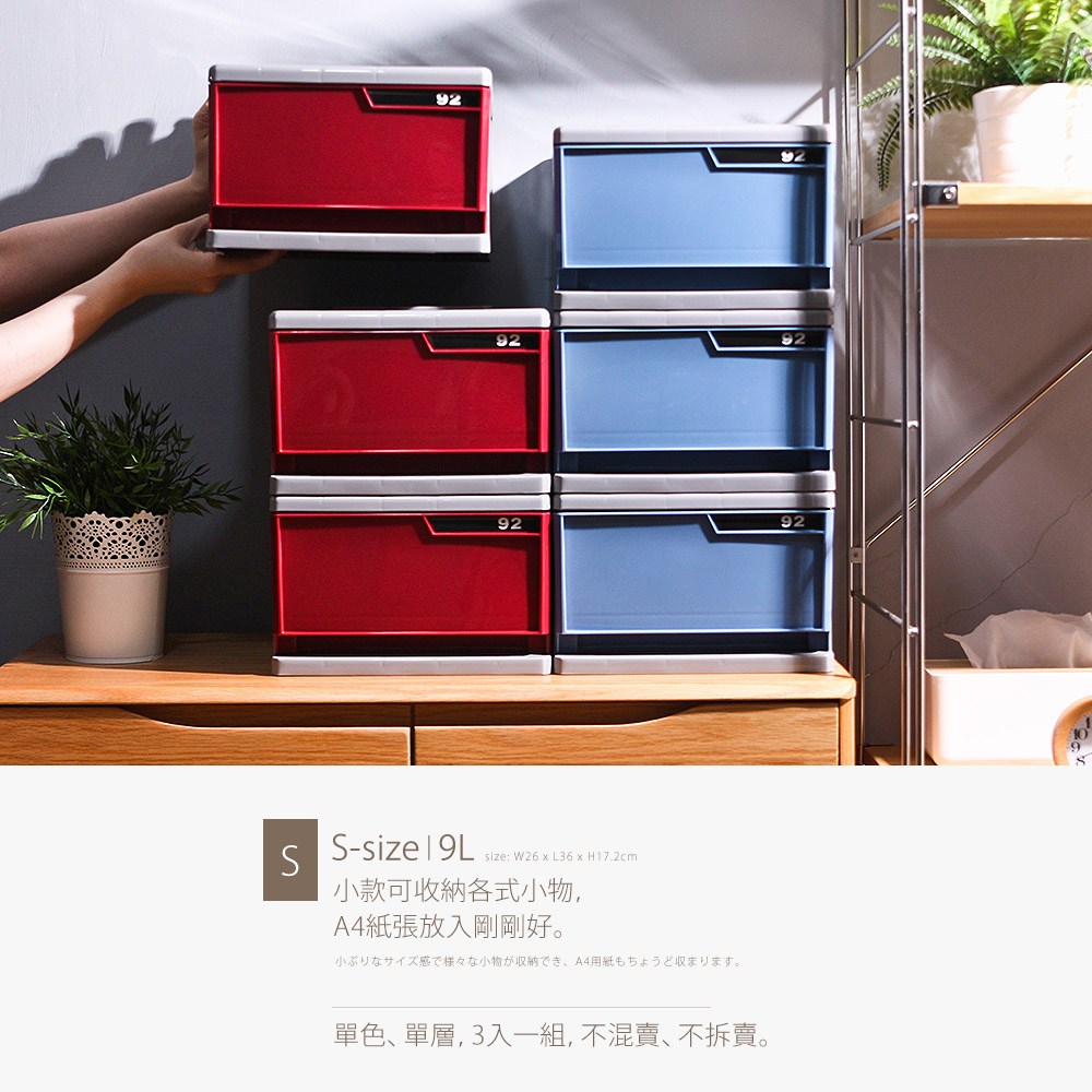 【Mr.box】免組裝單層抽屜式收納箱 9L-3入9L-3入(藍色)