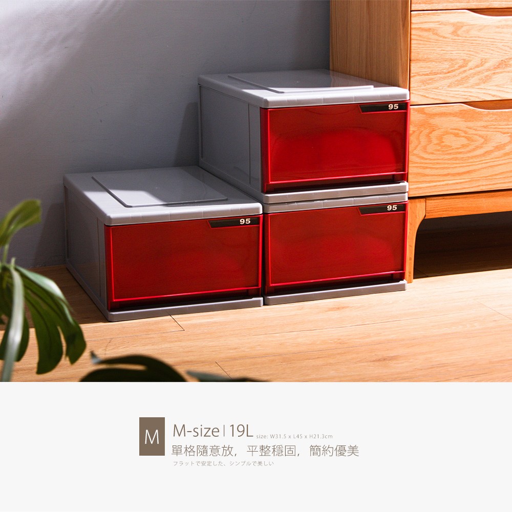 【Mr.box】免組裝單層抽屜式收納箱 19L-3入19L-3入(紅色)