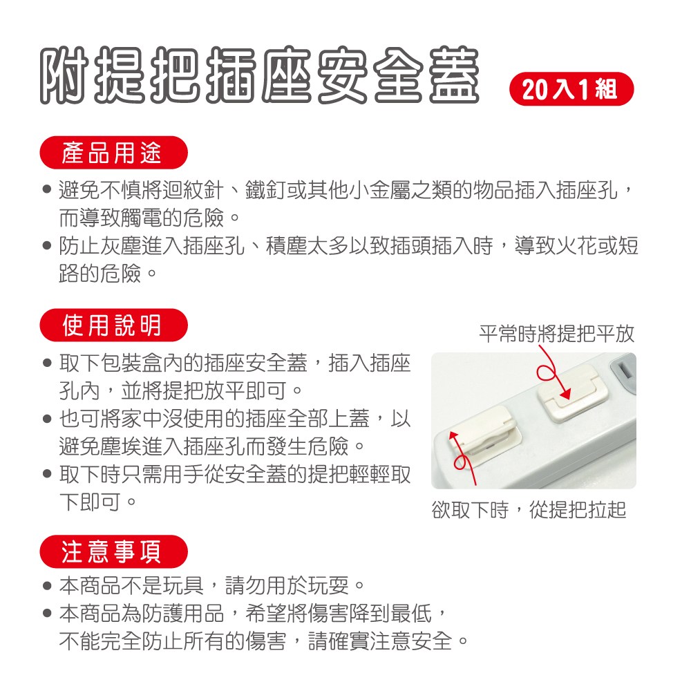 附提把插座安全蓋2孔 20入- 白色
