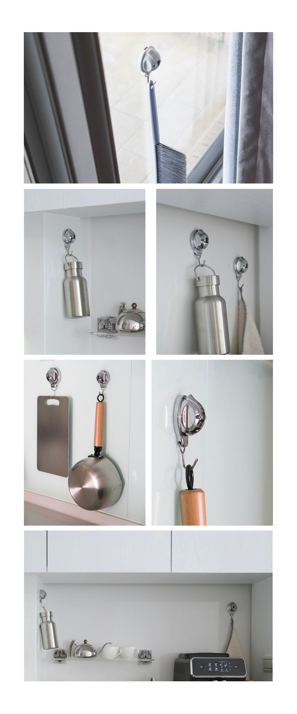 Kamsungnamja 免釘免鑽掛勾 第四代 2入 + 窗簾桿配件組 白色 內穿孔掛鉤(8 x 10.5cm) + 窗簾桿 1 號(100~170cm)