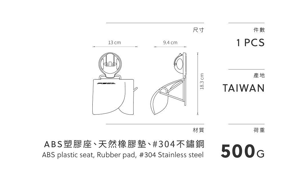 【FECA】E10 捲筒衛生紙吸盤架 - 白