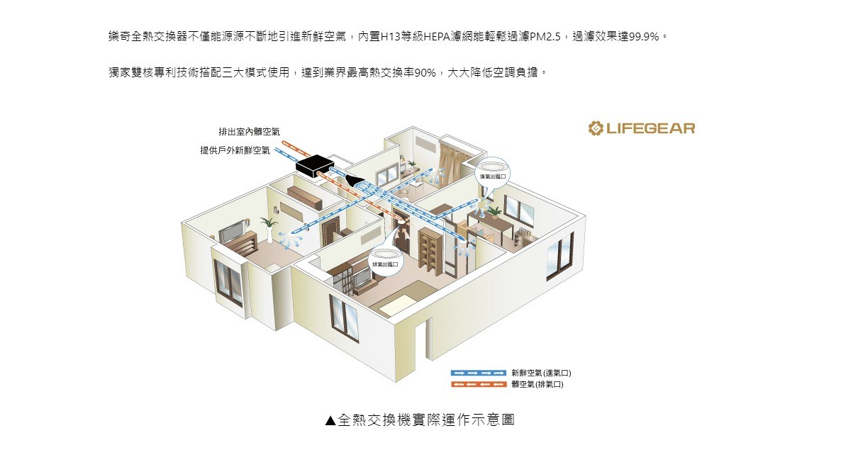 【樂奇LIFEGEAR】隱藏式新風機2.0 HVO-350GLD2 直流變頻 數位液晶控制 電壓220V (不含安裝)