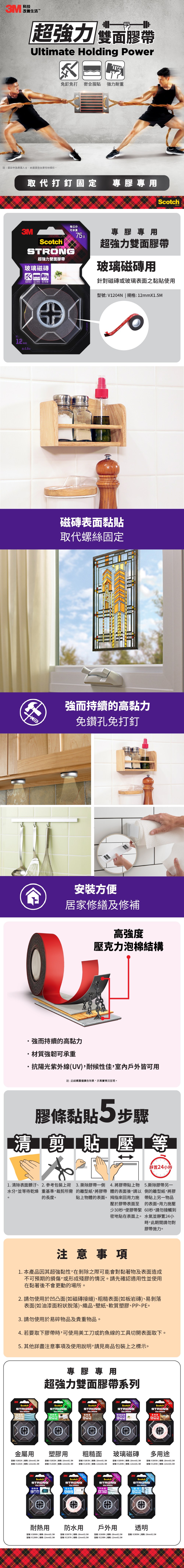 3M™ 超強力雙面膠帶—玻璃磁磚 12mm x 1.5M
