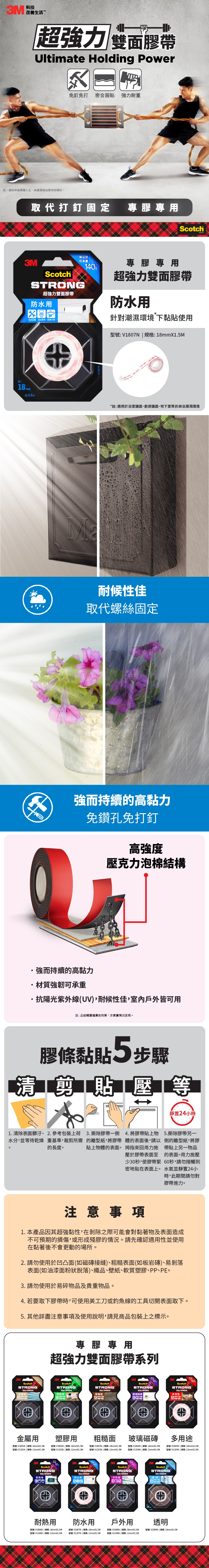 3M Scotch超強力雙面膠帶/V1808N/戶外用/18mmx1.5M