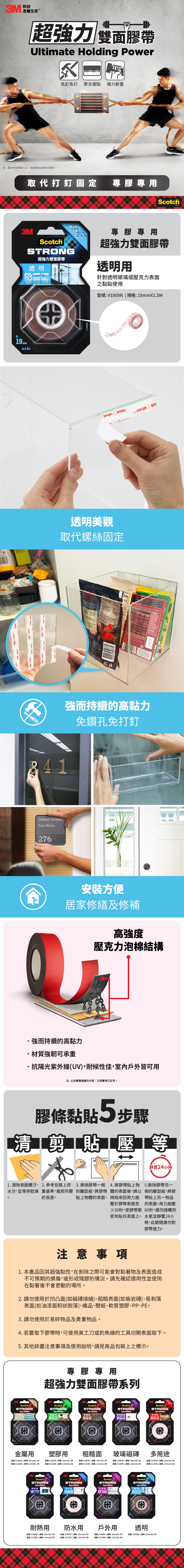 3M Scotch 超強力雙面膠帶 透明 19mmX1.5m