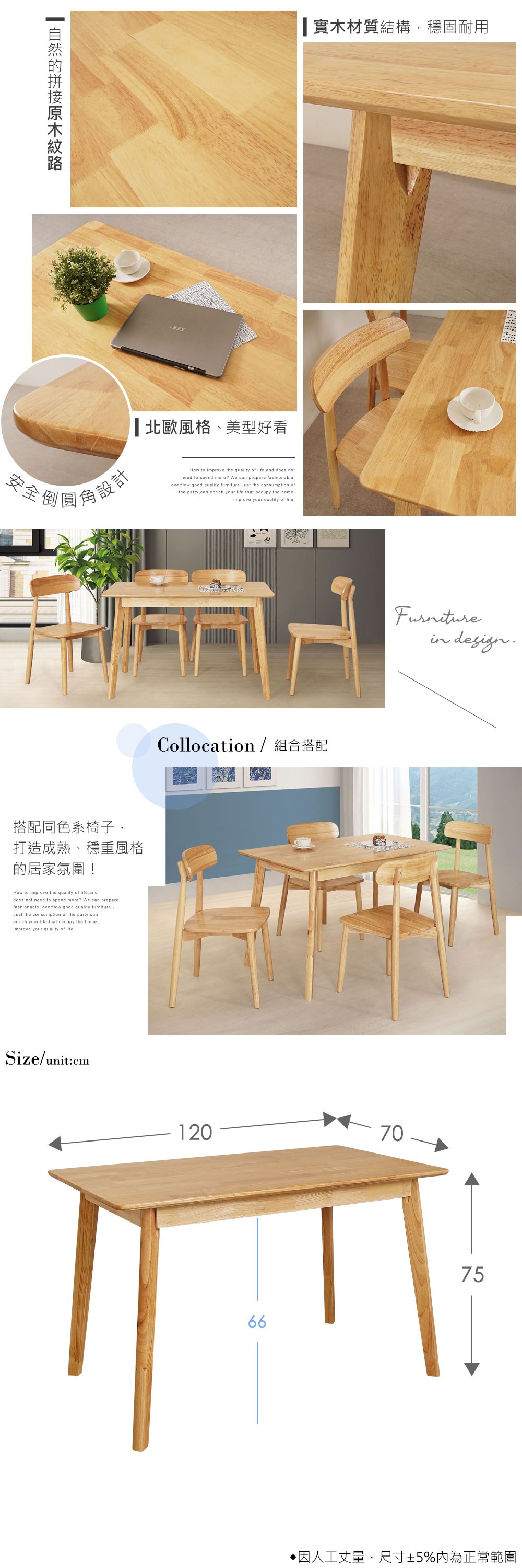 Homelike 喜家居120cm實木餐桌(原木色)(2312)