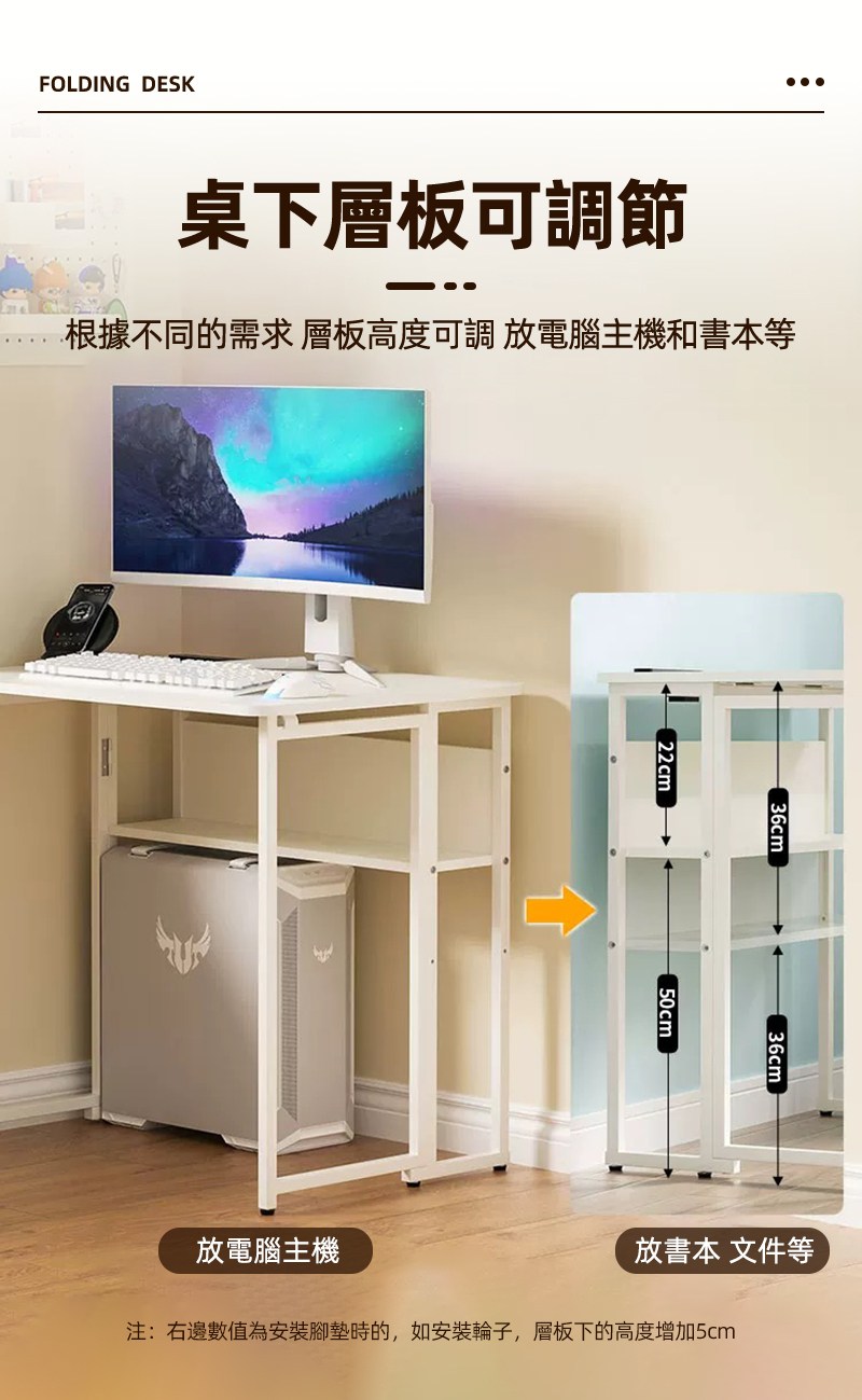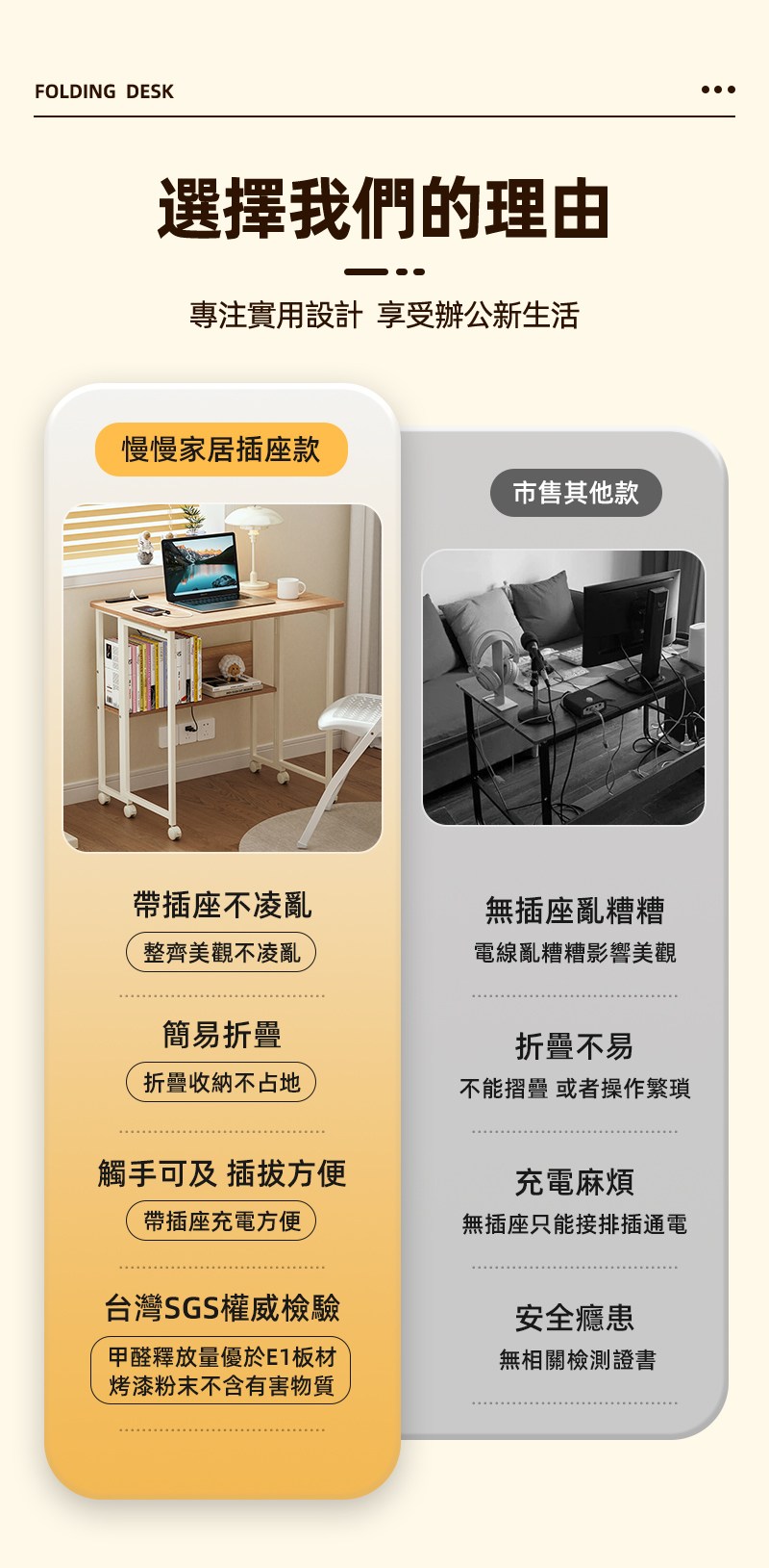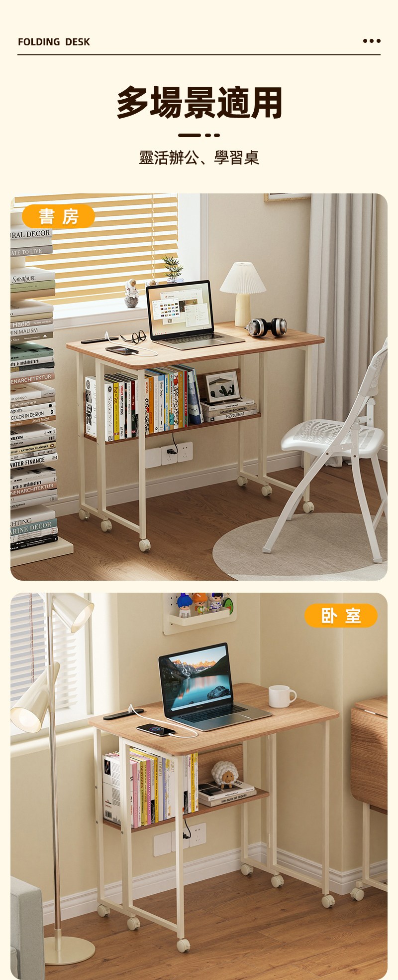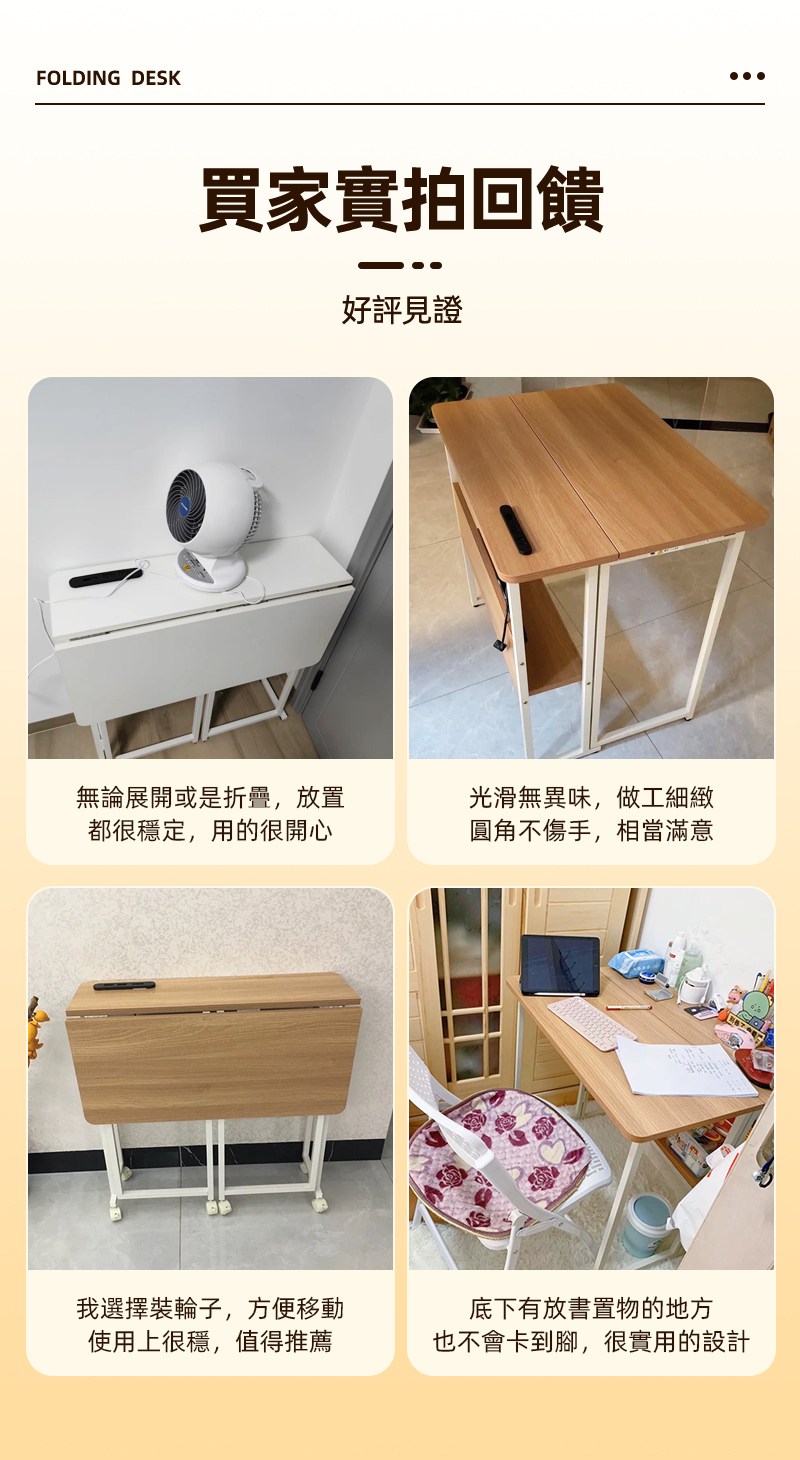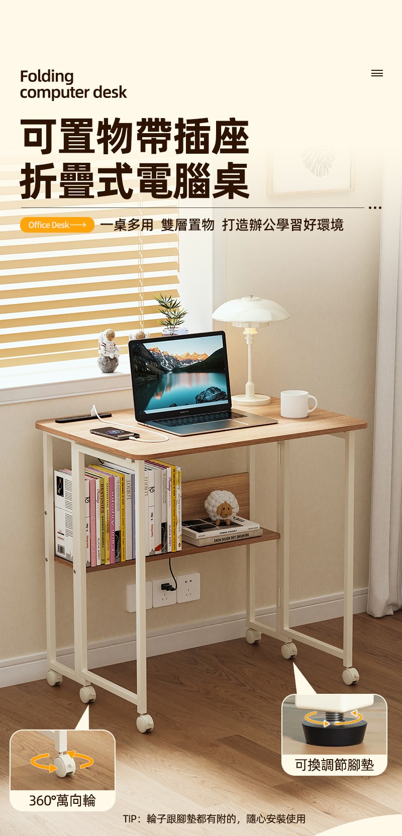【慢慢家居】SGS低甲醛-秒收帶插座可移動置物摺疊書桌 80x58x75/80cm (邊桌 電腦桌 移動桌 摺疊桌)置物插座摺疊桌80cm-木紋